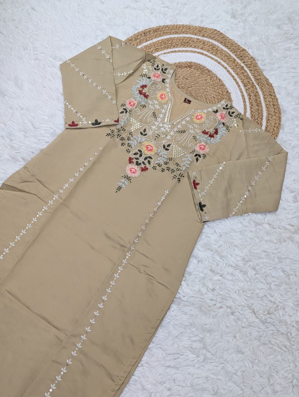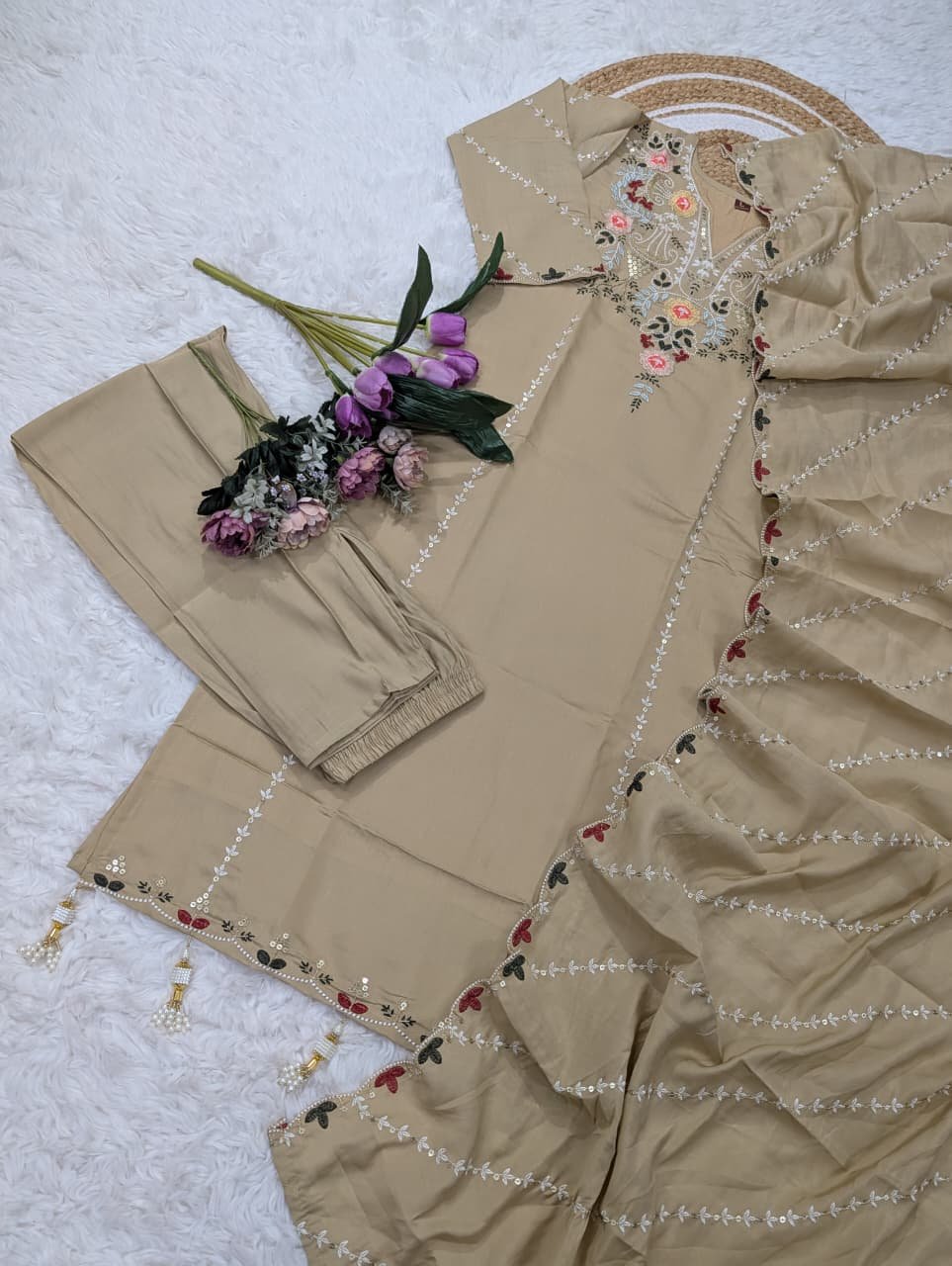 TOP FABRIC : PURE VISCOSE CHANDERI SILK WITH SEQUENCE COADING EMBROIDERY WORK