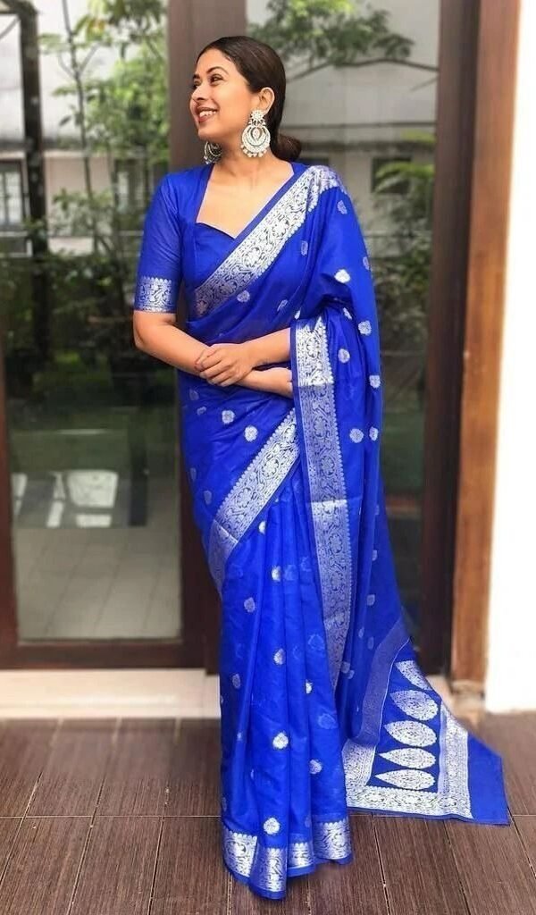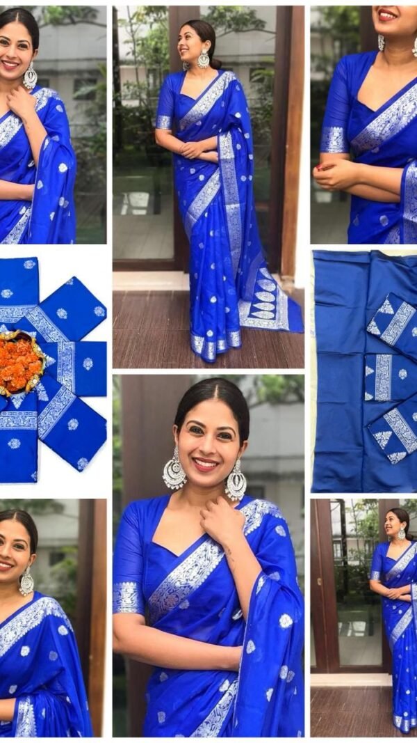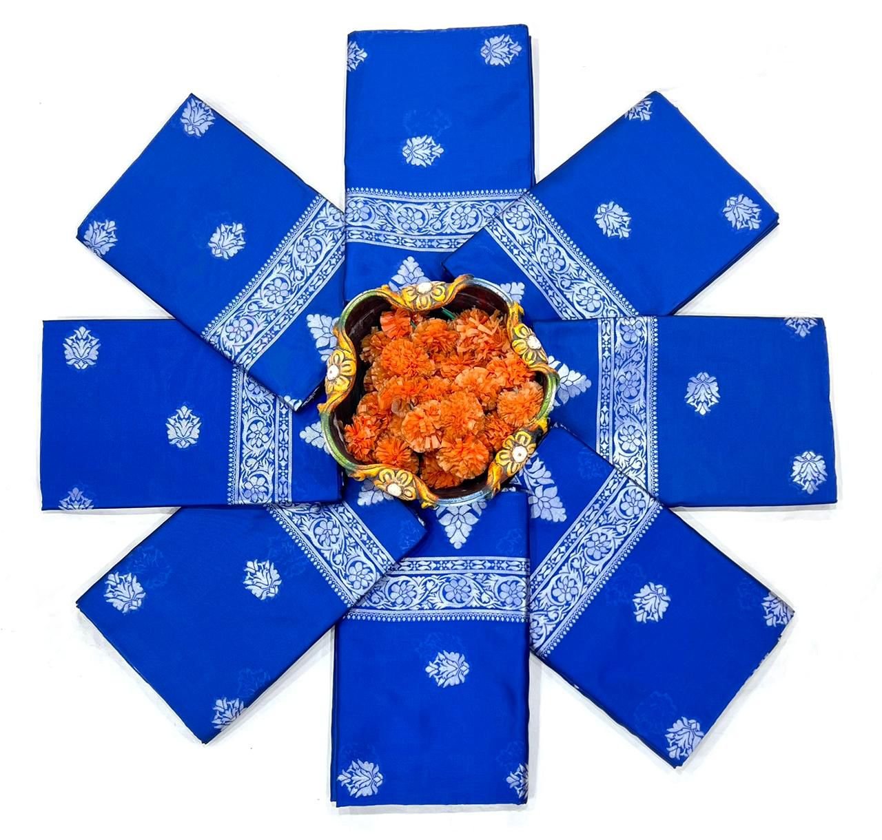 This blue soft lichi silk saree is perfect for festive celebrations, weddings, office parties, and family gatherings. The rich pallu and elegant jacquard detailing create a premium ethnic look. It is ideal for women who love stylish yet affordable sarees.