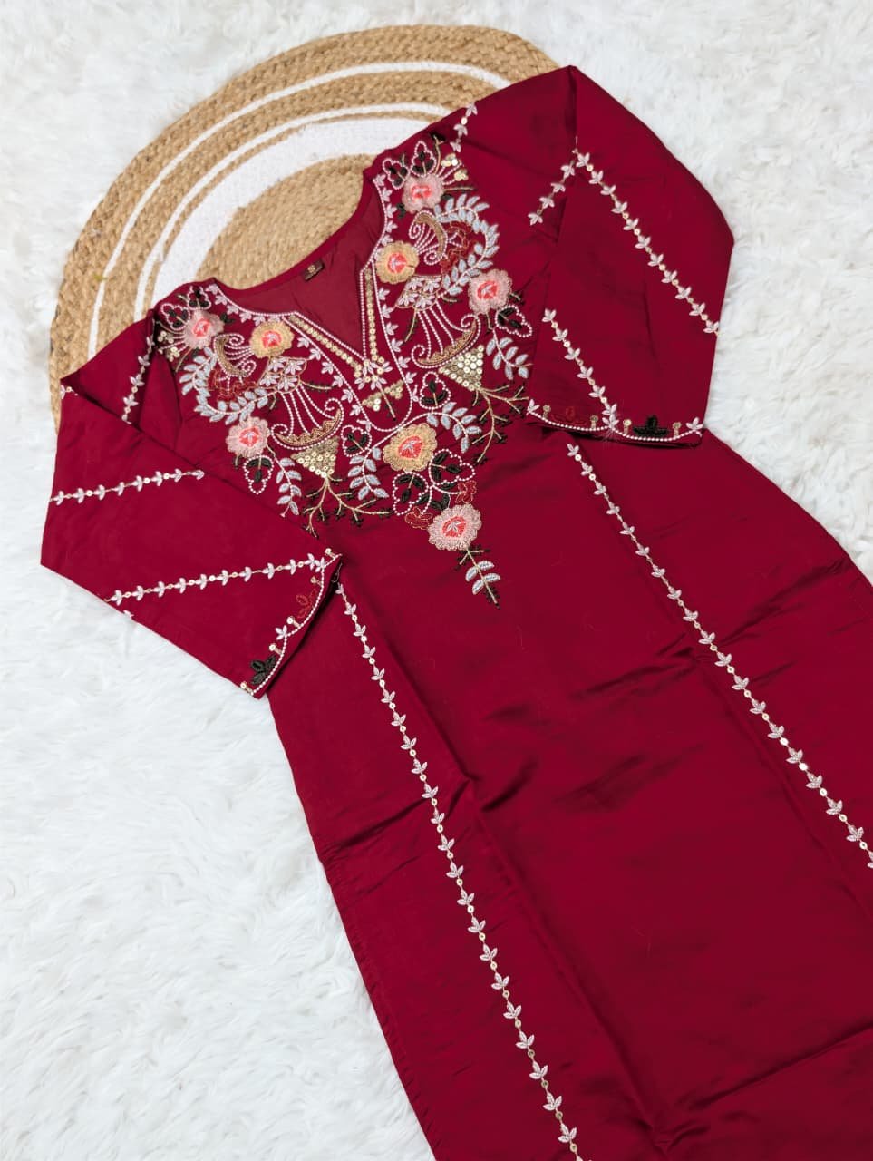 TOP FABRIC : PURE VISCOSE CHANDERI SILK WITH SEQUENCE COADING EMBROIDERY WORK