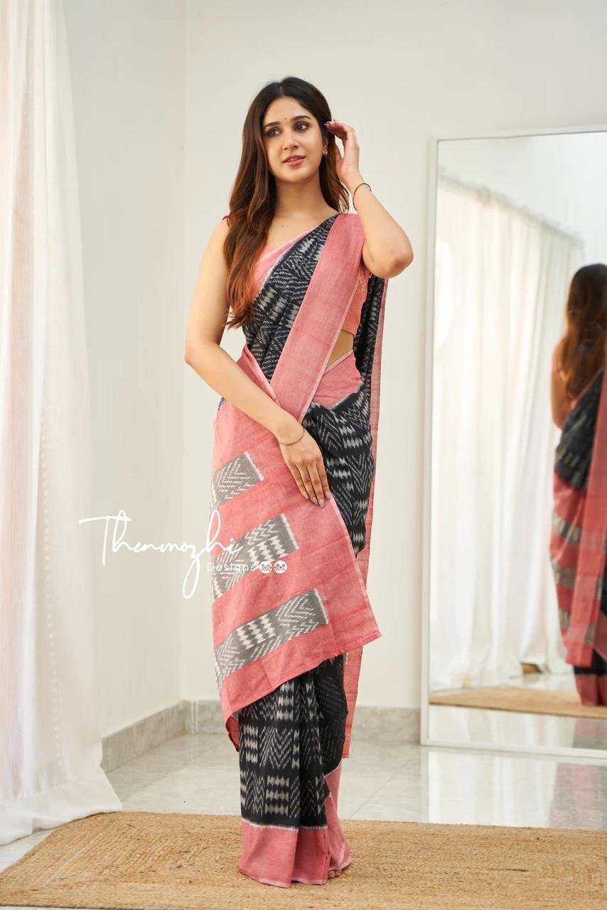 🧵Fabric:- Premium Chanderi Cotton With Ikkat Print Work & Blouse